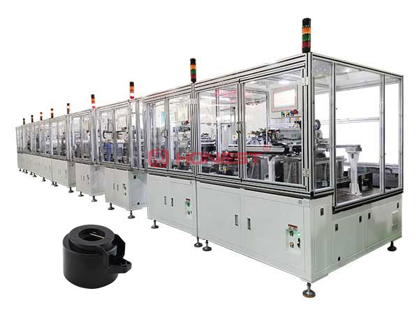 本生產(chǎn)線(xiàn)適用于汽車(chē)剎車(chē)閥爪極永磁同步電機(jī)組裝,產(chǎn)線(xiàn)由多臺(tái)設(shè)備組成,輸送方式采用輸送線(xiàn)+船板,呈“一”字型布局。產(chǎn)線(xiàn)主要由注塑前及注塑后二部分組成,主要包含骨架繞線(xiàn)、機(jī)殼組裝、定子組裝三大功能,工裝定位、仿型設(shè)計(jì),配置各種類(lèi)型傳感器,生產(chǎn)全過(guò)程監(jiān)測(cè),采用高精密檢測(cè)儀器,并具備相應(yīng)的提示報(bào)警機(jī)制。
