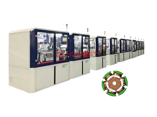 汽車(chē)座椅調(diào)角度電機(jī)裝配生產(chǎn)線,由多臺(tái)設(shè)備組成,U字型分布,使用船板+輸送線的方式傳送,主要完成繞線、點(diǎn)焊、精車(chē)、去重平衡、性能檢測(cè)等工序。生產(chǎn)線依據(jù)客戶工藝需求,為客戶量身定制,可有效解決勞動(dòng)力成本、技術(shù)管理等難題.